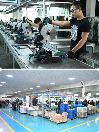 La fábrica consta de talleres de punzonado de hierro, fundición de aluminio, pintura, fabricación de motores, mecanizado de precisión y montaje. Todo el proceso de garantía de calidad —desde la inspección de materias primas y componentes hasta la verificación de seguridad previa a la salida de los productos de la fábrica— es supervisado por técnicos profesionales para asegurar una alta calidad.